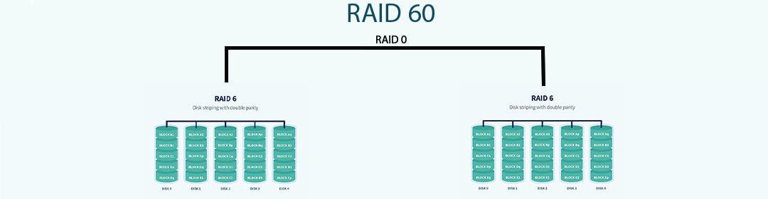 متشکل از 2 گروه و یا چند گروه RAID 5 می باشد که حداقل 2 دیسک در صورت از دست دادن قابل بازیابی بازیابی می باشد .