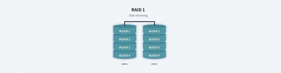 در raid 1 و یا به اصطلاح mirror از اطلاعات حداقل یک نسخه اضافه داریم که در صورت از دست دادن یک دیسک می توانیم اطلاعات را بازیابی کنیم ولی در RAID 1 سرعت پایین تری نسبت به RAID 0 در نوشتن داریم و فقط از نصف ظرفیت کل hard disk می توانیم استفاده مفید کنیم .