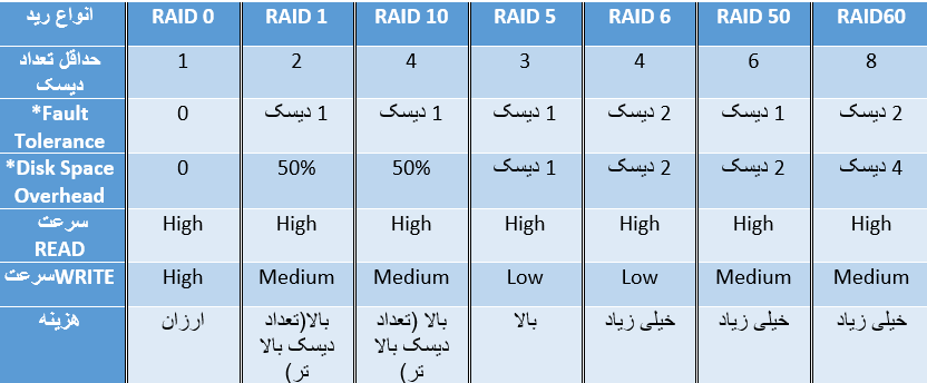 همه رید ها به جز RAID 0 مقداری از فضای hard disk ها را برای backup استفاده می کنند